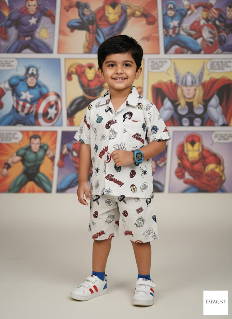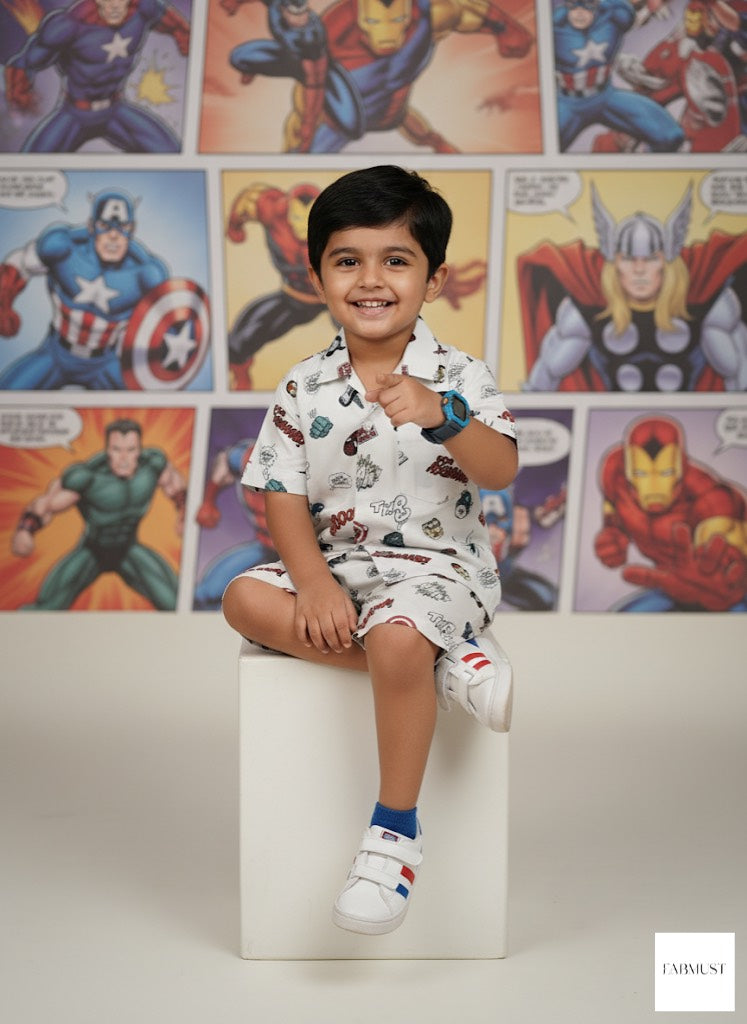 Soft 100% cotton, collar button-down printed cord set, comfy, stylish & perfect for every Avengers fan 💥🦸♂️