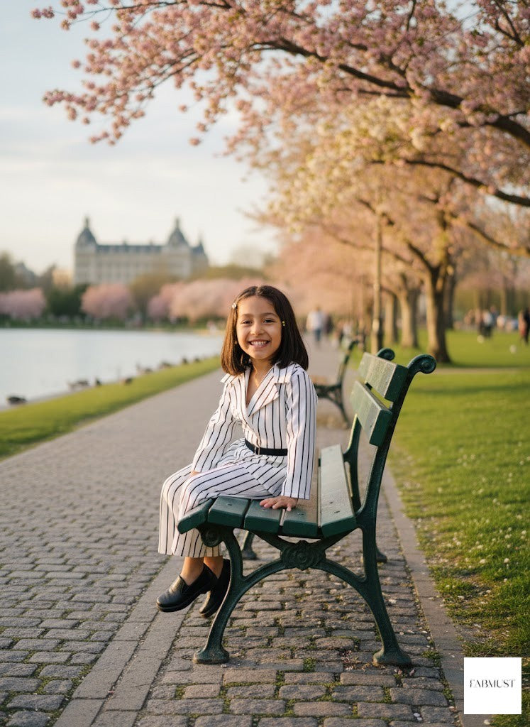 A chic coat with a belt and matching pants, perfect for kids’ events, parties, and birthdays. Classy, comfy and stylish! ✨
