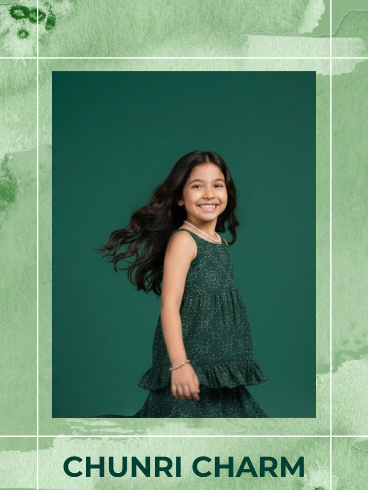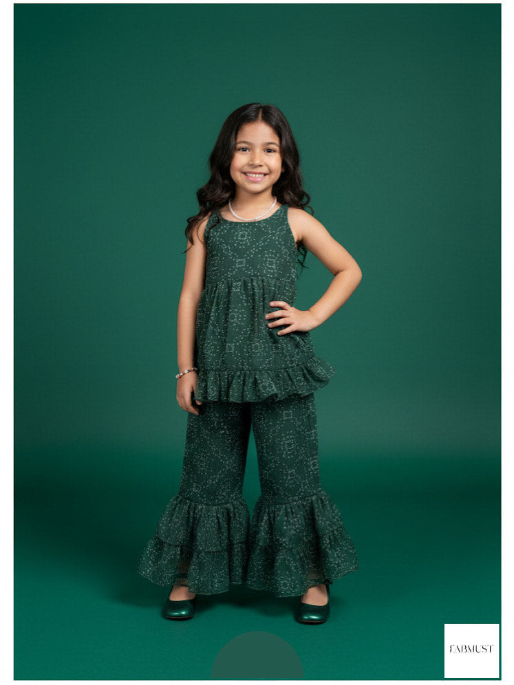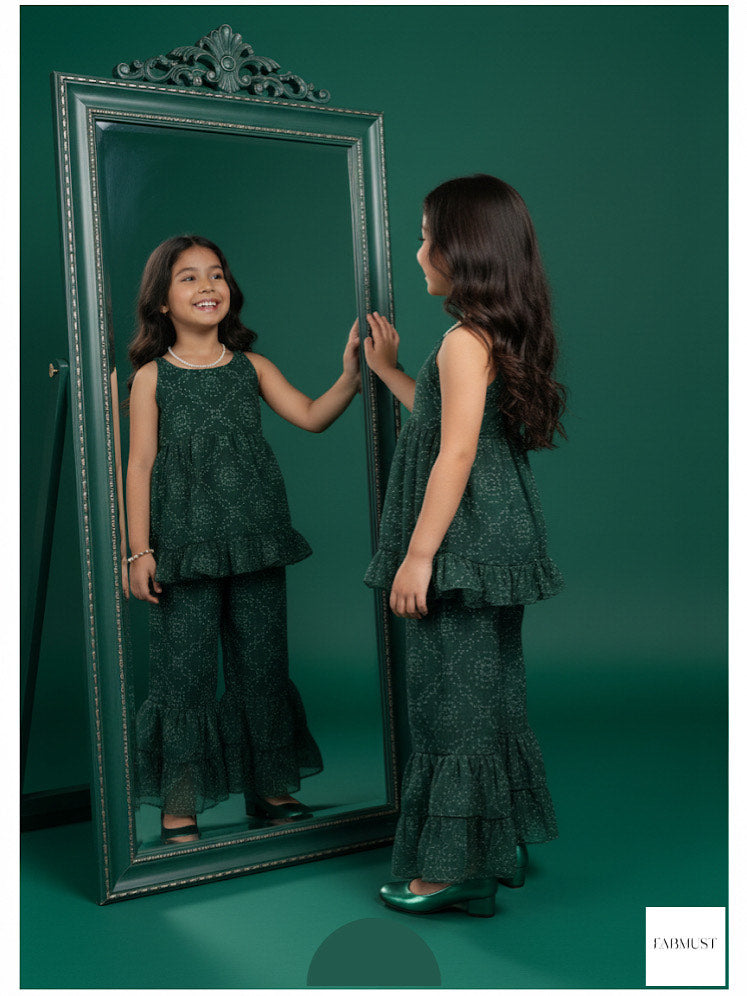 Step into elegance with our Chunri charm ruffle top & double ruffle pants with soft inner lining 💚